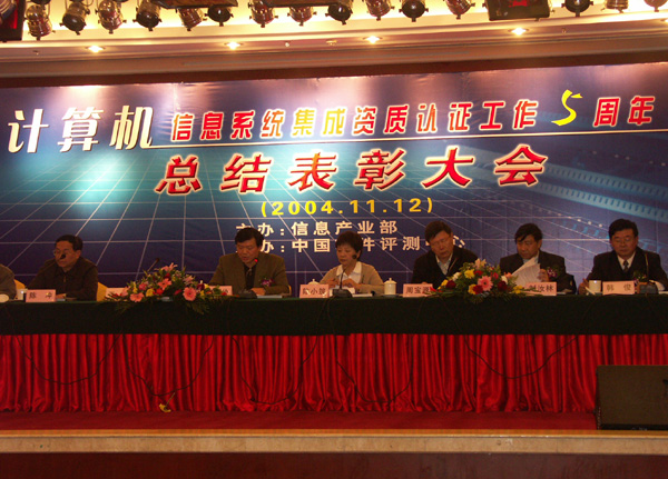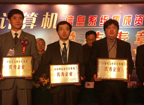 11月12日,汪旭总裁参加在北京世纪金源大酒店举行的“计算机信息系统集成资质认证工作五周年总结表彰大会暨中国电子企业协会计算机信息系统集成分会发起单位代表大会”。会上,公司被授予“2004年中国优秀计算机信息系统集成企业”称号。会议由信息产业部计算机信息系统集成资质认证工作办公室主办,中国软件测评中心承办,信息产业部娄勤俭副部长、国务院信息化工作办公室陈小筑司长出席并讲话。同时受到表彰的还有其他16家国家计算机信息系统集成一级资质企业和3家二级资质企业。