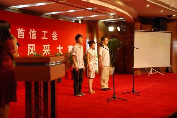 汪旭总裁为获奖者颁奖,对选手表现出的礼仪风范及对公司业务和文化的深刻理解予以充分肯定,并指出:此次大赛为公司职工搭建了一个展示风采、加强沟通的平台,为共同努力营建“和谐首信”创造了良好的条件。