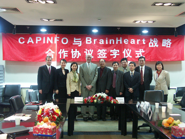 3月16日上午,“CAPINFO与BrainHeart战略合作协议签字仪式”在大运村总部举行,陈信祥董事长和Ulf Jonstromer首席执行官分别代表双方公司在协议上签字。市信息办李洪副主任、邹彤副主任、王勇处长、潘峰处长,BrainHeart公司Mats Jonerot总经理,公司汪旭总裁、张延副总裁、邵建平副总裁出席签字仪式。