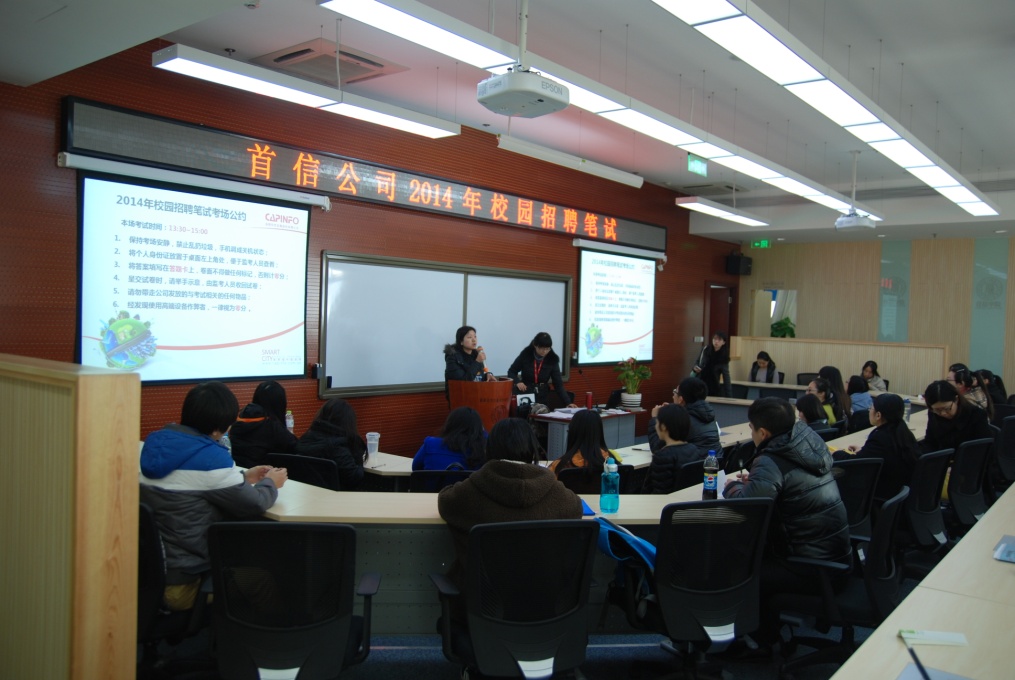 首信公司2014年度校园招聘笔试工作于12月6日正式拉开序幕。本次共筛选出来自北京科技大学、北京理工大学、北京工业大学等数十所高校近百名应届毕业生参加笔试。后续将根据笔试成绩安排小组面试和技术面试。