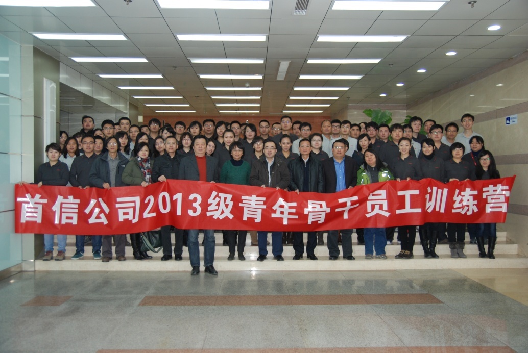 12月16日,首信公司2013级青年骨干训练营开营仪式在大运村一层首信学院培训教室举行。首信公司党委书记、总裁汪旭,党委副书记吴伟东,副总裁余东辉、高佳卿、吴波、龚承亮,财务总监宋戟,业务总监杨蕾、刘忠伟以及来自各中心、子公司的61名青年骨干员工参加开营仪式。