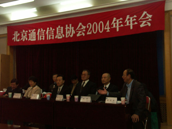1月8日,陈信祥董事长作为北京通信信息协会常务副理事长在北京邮电大学主持召开协会2004年年会,林金桐理事长通报协会2004年工作和2005年工作安排。协会还邀请科技部高新技术司冯记春司长和国家TD-SCDMA产业联盟杨骅秘书长分别做题为“我国的高新技术现状与发展趋势”和“TD-SCDMA技术及发展趋势”的专题报告。