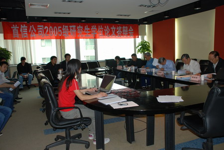 5月19日,“2008年首信硕士研究生学位论文答辩会”在大运村总部第一会议室举行。公司与北京工业大学联合培养的9名硕士研究生参加答辩,其导师为北京网络多媒体实验室陆首群主任、庄梓新副主任,公司陈信祥名誉董事长,北京软件行业协会华平澜会长。答辩委员会由4位导师及北京工业大学周小兵老师共同组成。参加答辩的研究生在导师的指导下,在公司社保应用与服务中心、网络技术服务中心、电子社区服务中心、2008奥运多语言服务中心完成了为期两年的实习及硕士毕业论文撰写工作。