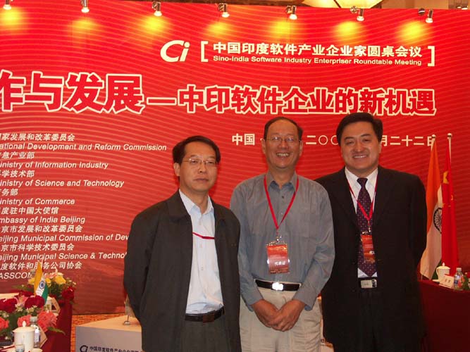 9月22日,陈信祥董事长参加在西苑饭店举行的“中印软件产业企业家圆桌会议”。来自北京、上海、天津、大连、深圳、西安等地的6个国家级软件出口基地、40多家中国软件企业代表,以及印度国家软件和服务企业协会(NASSCOM)、26家印度最具影响力的软件企业代表出席会议。与会者就中印两国软件产业的特点、发展前景、合作方向及合作方式等进行了深入交流。