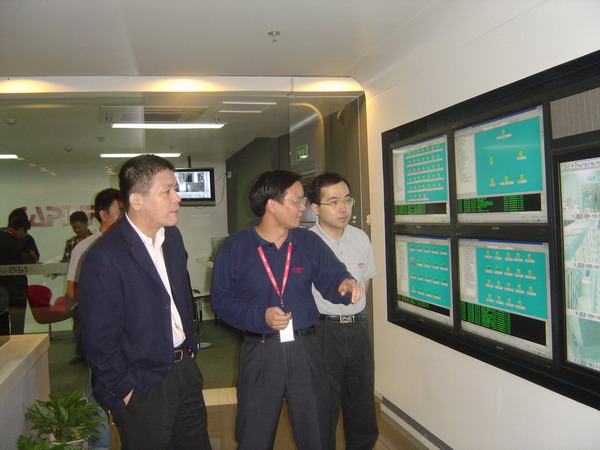 9月26日,北京市信息化工作办公室(简称:市信息办)朱炎主任、白新副主任,市信息办网络安全管理处孙志宜处长,北京市政务网络管理中心潘峰主任等一行四人到公司中塔分部视察有线政务专网工作,汪旭总裁陪同视察。视察期间,市信息办领导听取了公司国庆节期间有线政务专网工作安排的汇报,参观了IDC机房,并向节日期间仍将坚守工作岗位的同志们表示亲切慰问。