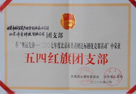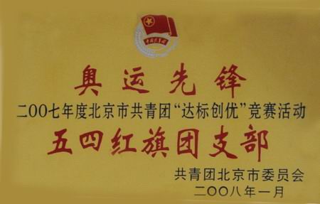 近日,北京体育科技有限公司团支部在共青团北京市委员会和北京市人事局联合主办的“奥运先锋——二〇〇七年度北京市共青团‘达标创优’竞赛活动”中荣获“五四红旗团支部”称号,该表彰系北京市团内综合性最高奖励。此次竞赛活动以“奥运建设”为主题,通过表彰在参与奥运筹办等工作中涌现出先进团支部,激发广大青年的奥运建设热情,促进基层团组织建设。