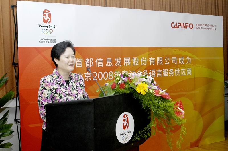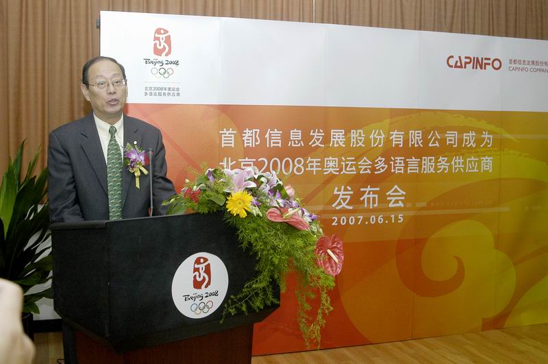 6月15日上午,“首都信息发展股份有限公司成为北京2008年奥运会多语言服务供应商发布会”在奥运大厦北京奥组委所在地举行。北京奥组委市场开发部袁斌部长、技术部贾胜文副部长,公司陈信祥董事长、汪旭总裁,北京奥组委相关部门领导,及《北京日报》、《北京晚报》、《北京娱乐信报》、《新京报》、中央电视台、北京电视台、北京外语广播电台等10余家媒体记者共60余人出席发布会。