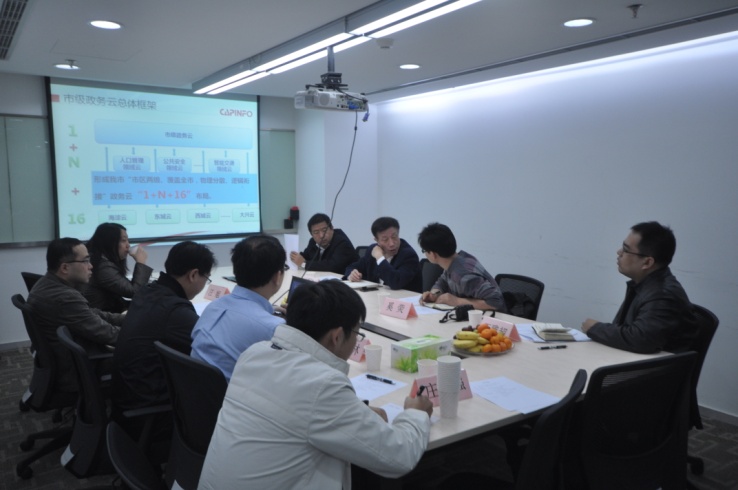 11月20日,北京市机要局局长许博春等一行四人,来到首信公司瑞得办公区,视察公司市级电子政务互联网云工作。公司总裁汪旭、业务总监杨蕾等陪同视察。