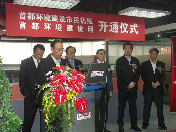 4月29日上午9时,首都环境建设市民热线12319暨首都环境建设网开通仪式在京版信息港9层首都信息呼叫中心所在地举行。开通仪式由市“2008”环境建设指挥部办公室(简称:市“2008”环境办)郑西平副主任主持,市“2008”环境建设指挥部总指挥吉林副市长,市“2008”环境建设指挥部副指挥李伟副秘书长,市“2008”环境办谈志民副主任,市“2008”环境办母秉杰副主任,市信息化工作办公室李洪副主任,市“2008”环境办各部部长,公司陈信祥董事长、汪旭总裁,以及新闻媒体记者等40余人出席开通仪式。吉林副市长在亲自点击开通12319热线之后,来到座席员身边认真地接听市民打来的热线电话,并对市民反映的问题予以耐心地解答。最后,吉林副市长、李伟副秘书长等领导在陈信祥董事长的陪同下视察了首都信息呼叫中心,并听取公司工作汇报。