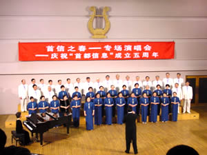 元月23日,首信公司新春联谊会在世纪剧院隆重召开。此次联谊会主题为"庆祝首信公司成立五周年暨2002年度工作总结大会"。大会由公司总裁汪旭主持,董事长陈信祥、公司决策层、管理层及各级员工共500余人参加了此次大会。