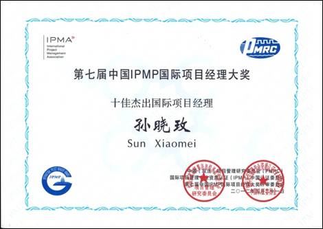 7月6日~7日,首信公司城市信息服务中心总经理孙晓玫在由国际项目管理协会(IPMA)主办,中国(双法)项目管理研究委员会(PMRC)、西安华鼎项目管理咨询有限责任公司联合承办的“第五届中国项目管理应用与实践论坛暨第七届中国IPMP国际项目经理大奖颁奖典礼”上,荣获“第七届中国IPMP国际项目经理大奖十佳杰出国际项目经理奖”,并应邀发表《对组织级项目管理的思考与实践》的主题演讲。