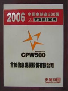 6月20日,孙子系副总裁参加在北京世纪金源大酒店举行的第四届中国电脑商年会及中国电脑商500强颁奖晚会。活动由《电脑商报》主办、中国IT供应链研究中心协办。会上公布了包括供应商100强、分销商200强、方案商100强、零售商50强,卖场50强在内的中国电脑商500强名单。公司被评为“2006中国电脑商500强之方案商100强”。