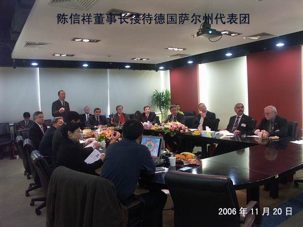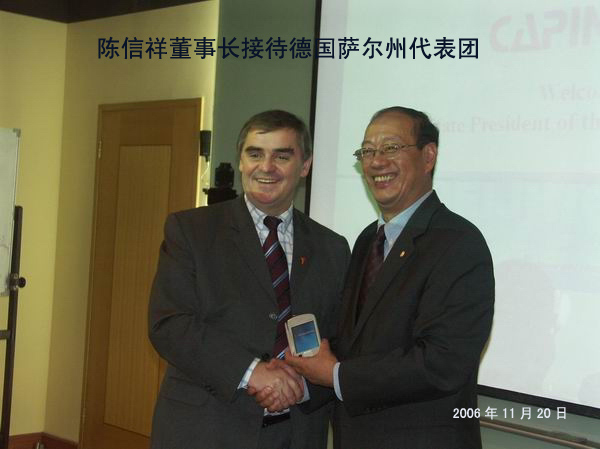 11月20日,陈信祥董事长在大运村总部接待德国萨尔州代表团一行。该代表团由萨尔州州长Peter Müller先生、萨尔州经济和劳动部国务秘书Christian Ege博士、萨尔州经济和劳动部对外经济关系司司长Joachim Kiefaber先生、州长办公室主任Peter Schon先生、萨尔州政府发言人Udo Recktenwald先生等14人组成。双方就COMPASS项目进行交流,Peter Müller州长还饶有兴趣地试用了COMPASS项目成果。