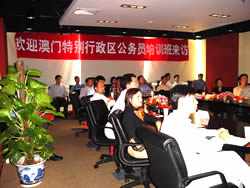 9月2日下午,汪旭总裁在大运村总部与澳门特别行政区公务员培训班二十三位学员进行了座谈。培训班学员来自澳门特别行政区文化局、财务局公证处、法务局资讯处、邮政局等部门。随后,培训班学员一行前往中塔办公区参观了公司IDC机房、系统监控中心和DEMO CENTER。
