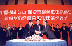 2003年2月24日,北京市科学技术委员会、北京市信息化工作办公室和IBM中国公司举行了隆重的新闻发布会,宣布"中国 - IBM Linux解决方案合作中心"正式成立。该中心是秉承去年北京市与IBM中国公司签定的Linux合作备忘录的合作意向而建立的。它的建立对于中国Linux产业的发展具有重要的意义,同时也标志着中国的Linux研发、应用和市场已经迈上了一个新台阶。
